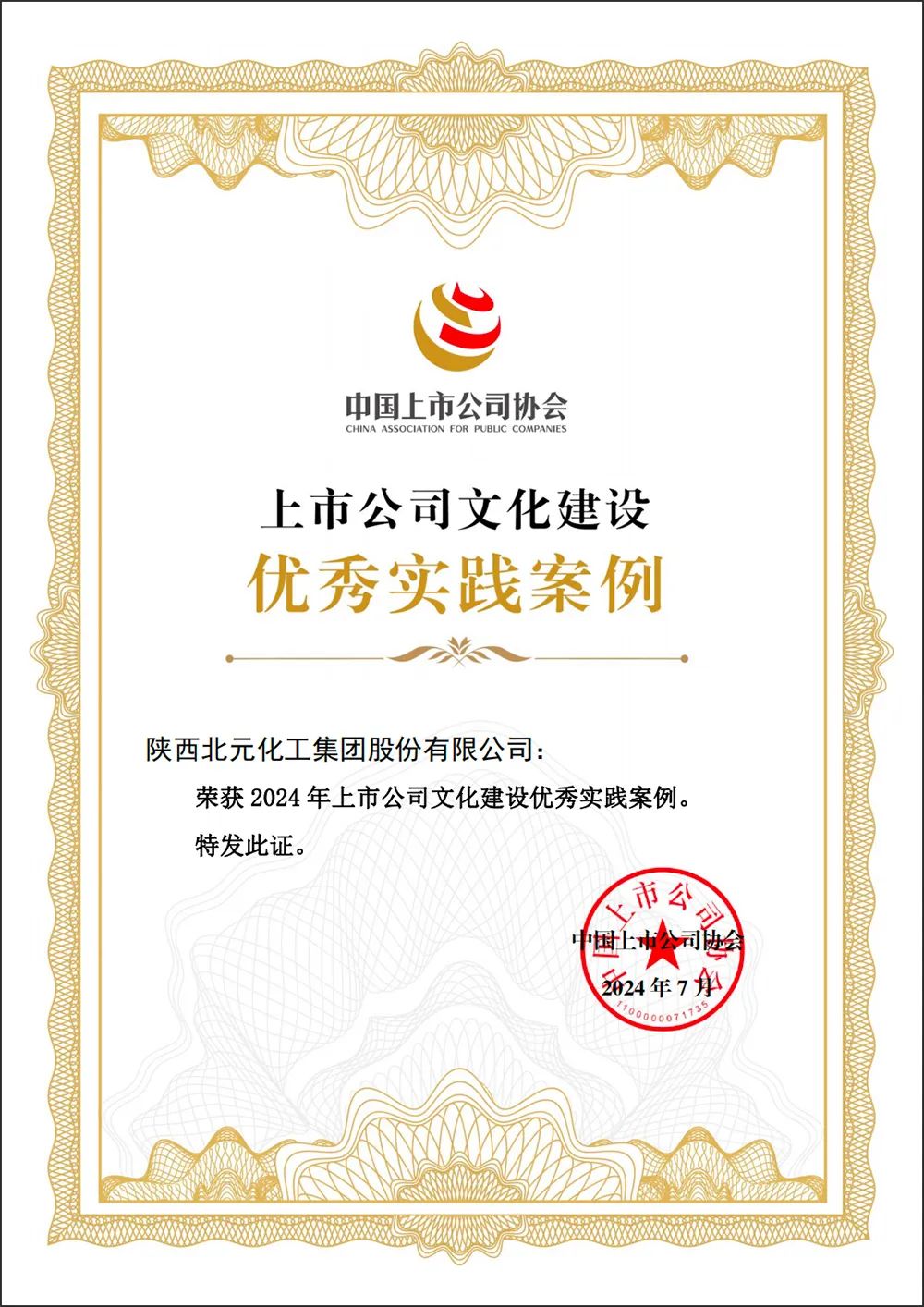 近日,在中国上市公司协会开展的“上市公司文化建设最佳实践案例”征集活动中,北元集团荣获“2024 年上市公司文化建设优秀实践案例”。