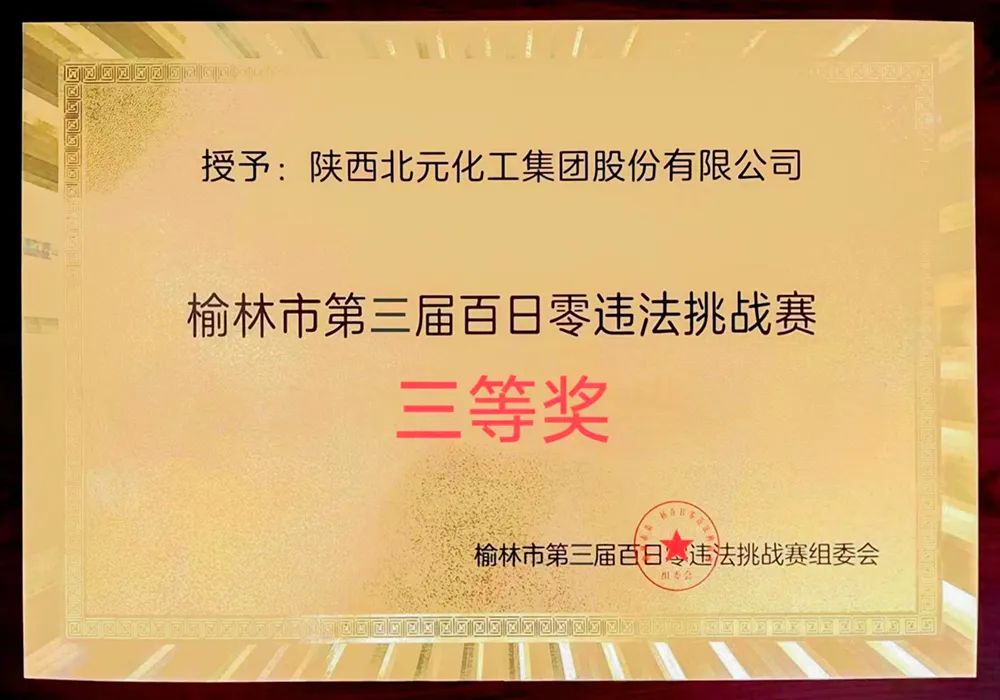近日,在中共榆林市委宣传部、榆林市委文明办、榆林市公安局交警支队、榆林市交通运输局主办,榆林市福利彩票发行中心协办,榆林传媒中心承办的榆林市第三届“百日零违法”挑战赛中,北元集团荣获三等奖。