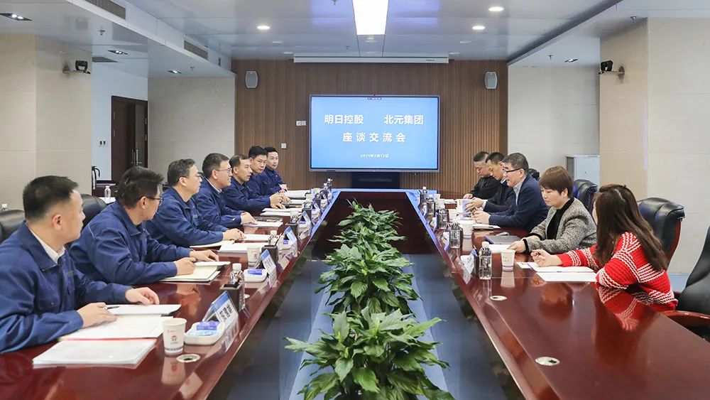 3月12日,浙江明日控股集团股份有限公司党委书记、董事长韩新伟一行来北元集团座谈交流。公司党委书记、董事长史彦勇,党委副书记、董事、总经理刘建国等热情接待。