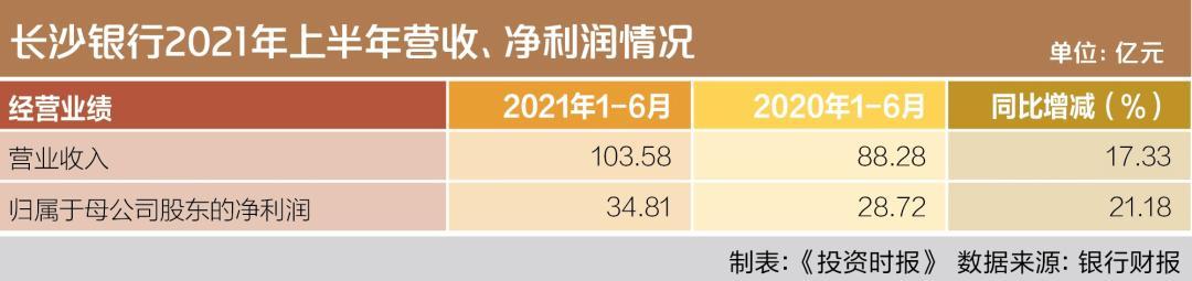 作为区域性城商行,长沙银行业绩增长呈良好态势。截至今年6月末,该行实现营业收入103.58亿元,同比增长17.33%;实现归属母公司股东的净利润34.81亿元,同比增长21.18%。
