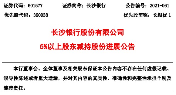 12月21日,长沙银行发布5%以上股东减持股份进展公告,公司第四大股东湖南兴业投资有限公司(以下简称“兴业投资”)于2021年12月14日至17日通过集中竞价减持的400万股股份的减持价格区间为7.83元/股—7.86元/股,减持总金额3137.70万元,低于长沙银行首次公开发行的股票发行价格7.99元/股,违反了减持承诺和减持计划。