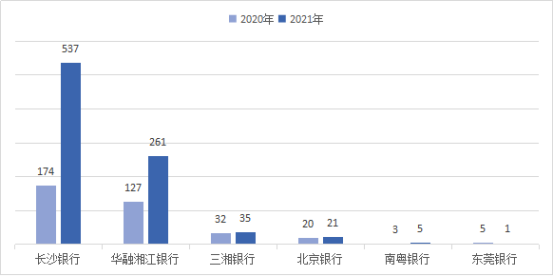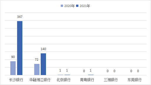 其中,长沙银行、华融湘江银行的投诉量位列城市商业银行(含民营银行)前二位。2021年,辖内城市商业银行(含民营银行)投诉量的中位数为28件。其中,长沙银行537件,同比增长208.62%,占城市商业银行(含民营银行)投诉总量的62.44%;华融湘江银行261件,同比增长105.51%,占比30.35%;三湘银行35件,同比增长9.38%,占比4.07%;北京银行21件,同比增长5.00%,占比2.44%;南粤银行5件,同比增长66.67%,占比0.58%;东莞银行1件,同比减少80.00%,占比0.12%。