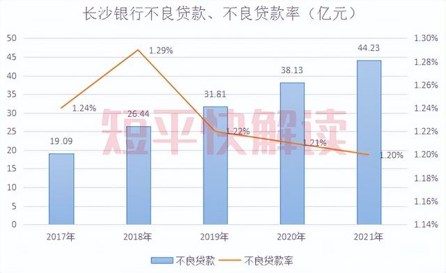 据短平快解读了解,截至报告期末,长沙银行不良贷款率为1.20%,较上年末下降0.01个百分点,已经实现连续三年下滑,与此同时,长沙银行的不良贷款持续增加,报告期末为44.23亿元,较上年末增加6.1亿元,增长率为16%。