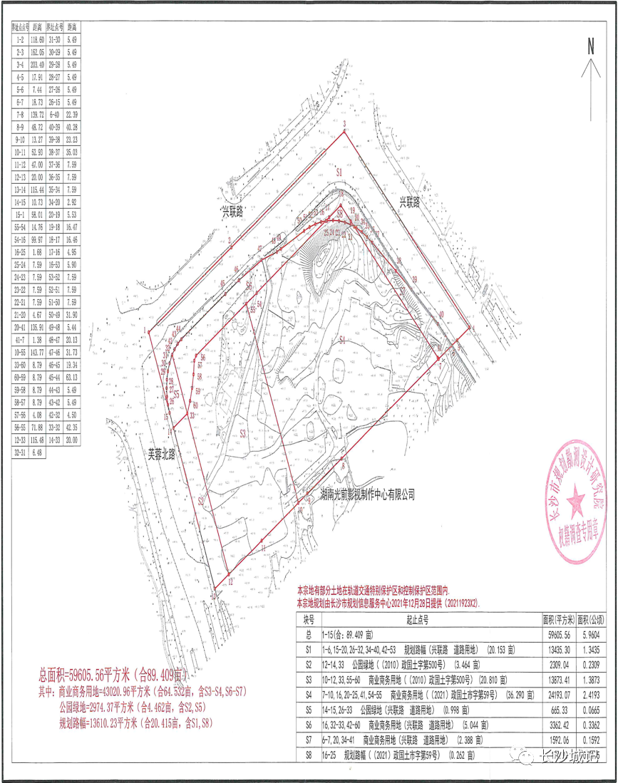 该地块位于开福区秀峰街道兴联社区,芙蓉北路以东、兴联路以南以西、光前影视以北,出让面积43020.96㎡(约64.5亩),用地性质为商业服务业设施用地,总建面约18.5万方,容积率≤4.3,建筑密度≤35%,限高150米。