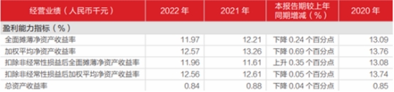 2022年,长沙银行加权平均净资产收益率为12.57%,较上年同期下降0.69个百分点;扣除非经常性损益后加权平均净资产收益率为12.56%,较上年同期下降0.05个百分点。