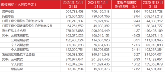 截至报告期末,长沙银行资产总额9,047.33亿元,较上年末增加1,085.83亿元,增长13.64%,发放贷款和垫款本金总额4,260.38亿元,较上年末增加564.23亿元,增长15.27%;负债总额8,425.61亿元,较上年末增加1,030.57亿元,增长13.94%,其中吸收存款本金总额5,786.48亿元,较上年末增加722.79亿元,增长14.27%。