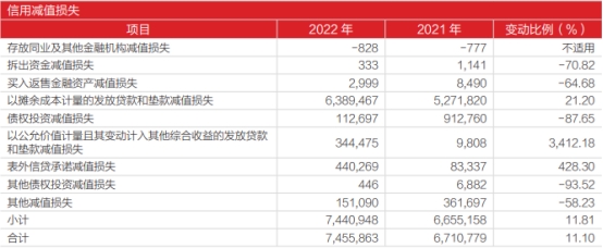 2022年,长沙银行共计提信用及其他资产减值损失74.56亿元,同比增加7.45亿元,增长11.10%。其中,计提信用减值损失74.41亿元,同比增长11.81%。