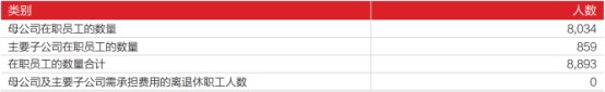 2022年末,长沙银行在职员工的数量合计8,893人,其中母公司在职员工的数量8,034人,主要子公司在职员工的数量859人。