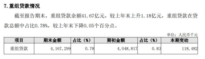 此外,截止到今年6月底,长沙银行的重组贷款余额更是高达41.67亿元,较去年底净增1.18亿元。
