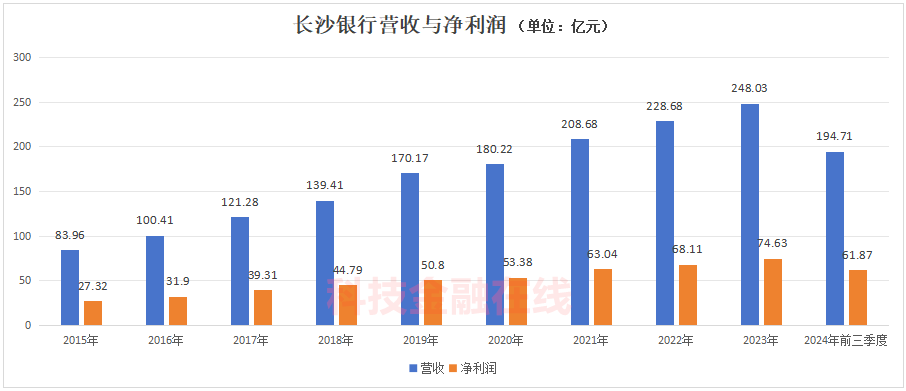 今年前三季度,长沙银行营收入195亿,净利润62亿。