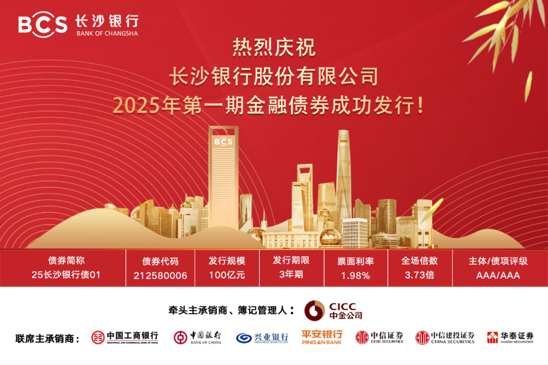 本期债券牵头主承销商和簿记管理人为中金公司,联席主承销商为中信证券、中信建投证券、华泰证券、兴业银行、工商银行、平安银行和中国银行。本期发行获得市场机构的踊跃认购,参与机构覆盖银行、保险、基金、券商等多层次投资主体,充分体现了投资者对长沙银行信用资质和发展前景的高度认可。线上簿记发行全流程清晰规范、全程留痕,有效提升了发行效率和透明度。