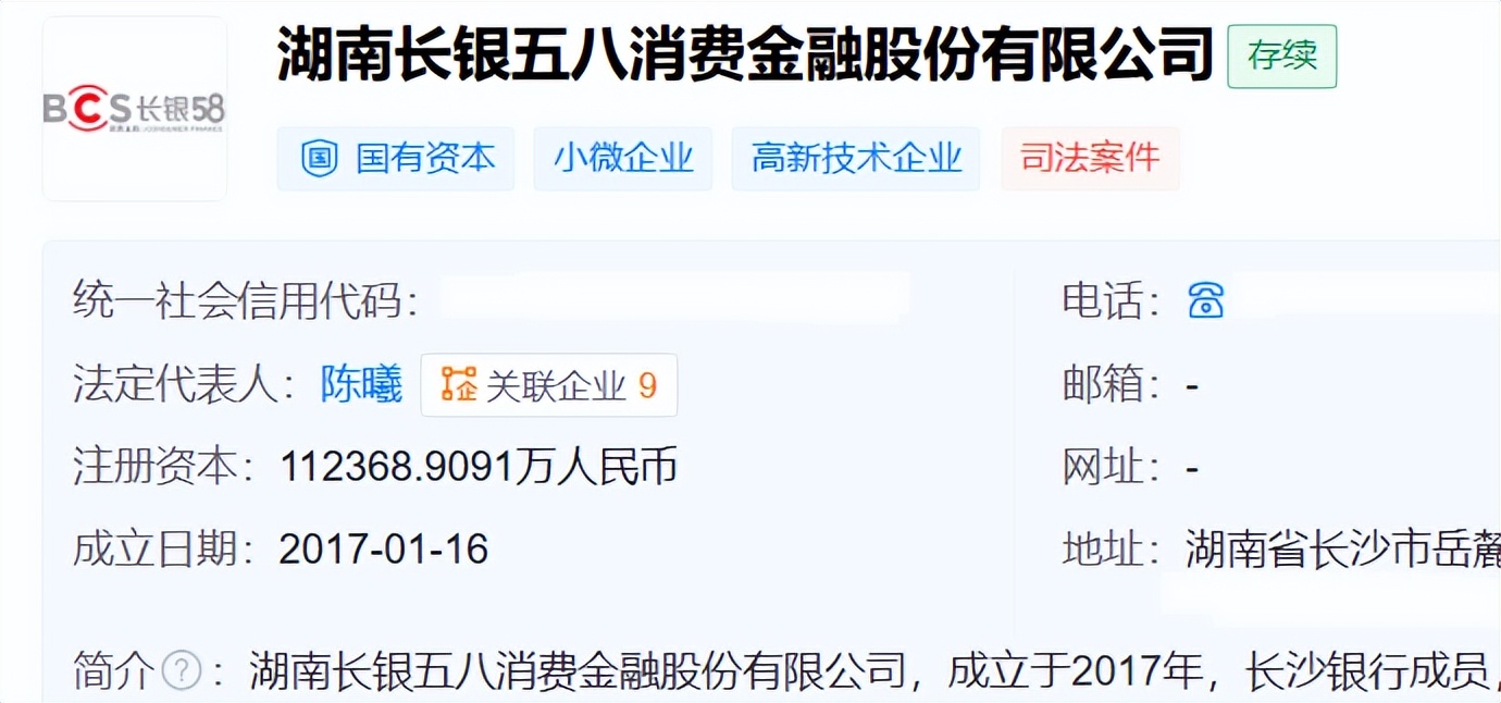 长银五八消金成立于2017年1月,注册资本约1.12亿元,法定代表人是陈曦。