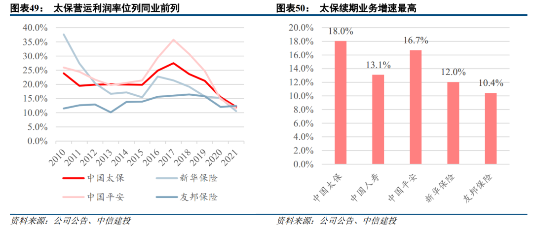 中国太保公司治理优秀,前瞻性发行GDR,补充资本金、引入多元化国际化董事成员、推进国际化大健康布局;引入原AIA改革先锋蔡强先生主导本轮改革、且存量业务积累深厚,价值增速及稳定性位列同业前列。产险管理层敏锐把握机会窗口,盈利能力无忧。太保投资端自上市以来总、综合投资收益率高于同业、波动率低于同业,实现了真正的长期价值投资,且地产风险敞口较低、资产负债久期缺口持续收窄,未来盈利能力得以保障。
