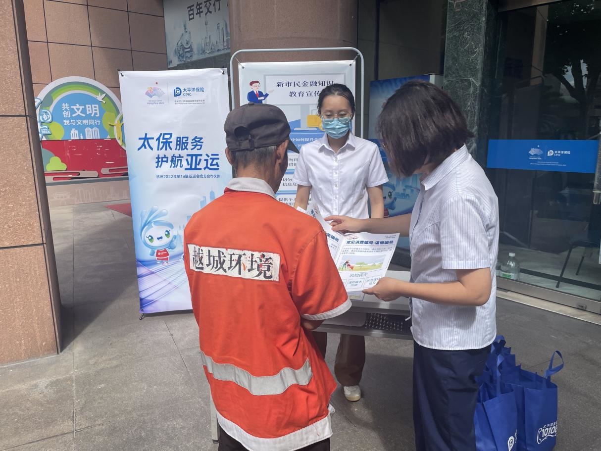 “新”形式宣教更有温度“参加了活动才知道现在金融诈骗这么多,骗子手段这么高明”,“以前分不清到底金融服务还是金融诈骗,为了防止被骗只好全部拒绝,错失很多网络金融带给我们的便利”,在浙江绍兴,环卫工人连连点赞中国太保开展的“金融知识送给最有需要的人”宣传活动,希望能继续通过类似活动学习到更多的防欺诈知识和保险金融知识。在浙江、重庆、安徽、江西、福建等地,中国太保当地分支机构积极践行“公益宣传+保险服务推广”模式,用心挖掘金融知识盲点、弱点、难点、疑点,有针对性地开展金融知识扫盲,向社区老人、环卫工人、安保人员等现场宣传金融、保险知识和网络风险警示教育,助力政府巩固拓展脱贫攻坚兜底保障成果,不断增强困难群众获得感和安全感。