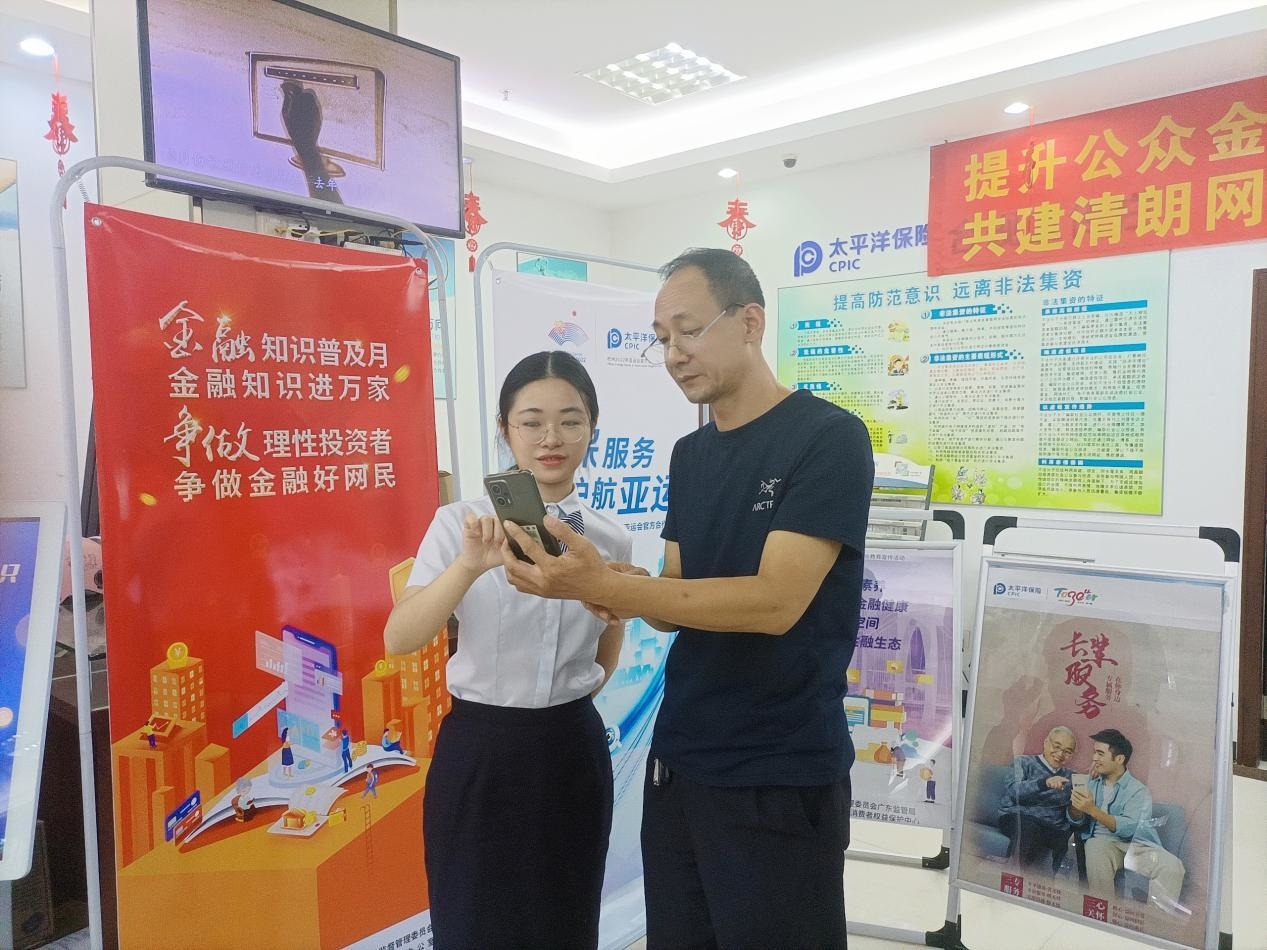 江苏南通客户在参加当地金融知识普及月活动时感动地说,当地分支机构太保服务官张静向客户演示中国太保寿险微信服务号各项功能,针对客户的保险金融知识的疑问一一解答,并邀请客户亲自体验了太保蓝本中视频医生这一项服务,受到了现场客户的一致好评。在广西,中国太保产寿联动员工代表共同宣读《太保诚信服务宣言》,向社会传播太保服务承诺。同时通过“金融知识有奖问答”互动、金融知识拍照打卡墙等环节,激发客户参与互动,化身金融知识传播者,为防范金融风险代言。在深圳,中国太保通过歌唱快闪、有奖知识答题、金融宣传打卡等传递金融教育宣传的活力和精彩,引导消费者主动学习金融知识。