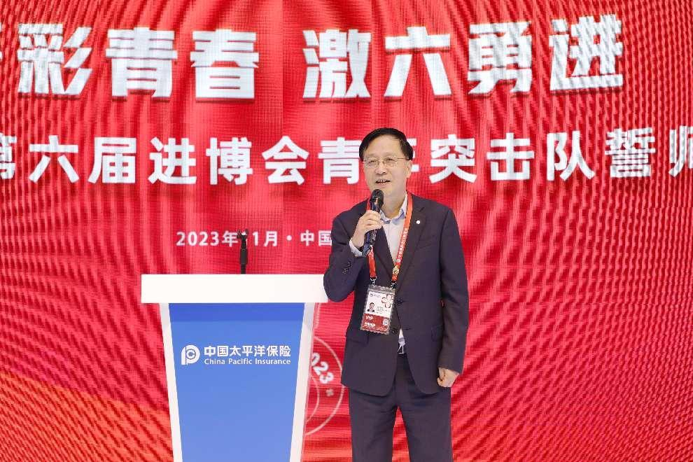 孔庆伟寄语青年突击队奋勇向前、不负韶华,努力践行“太保服务,让进博会更圆满”的青春诺言,共同书写太保青年服务保障第六届进博会的精彩篇章。
