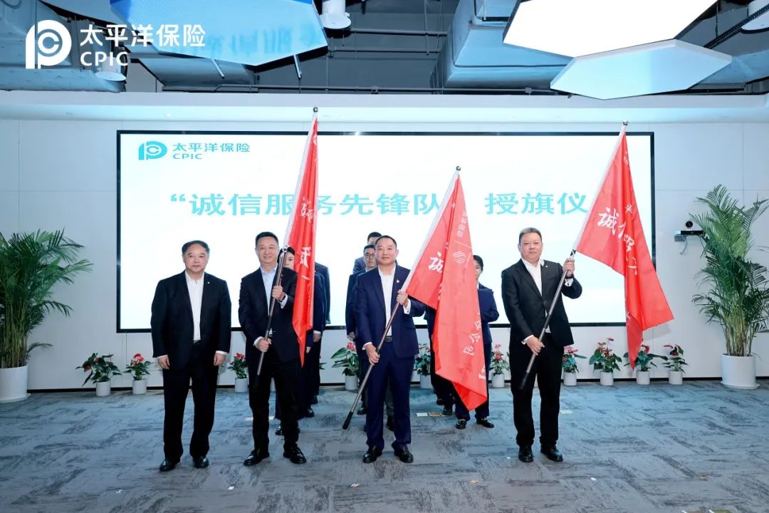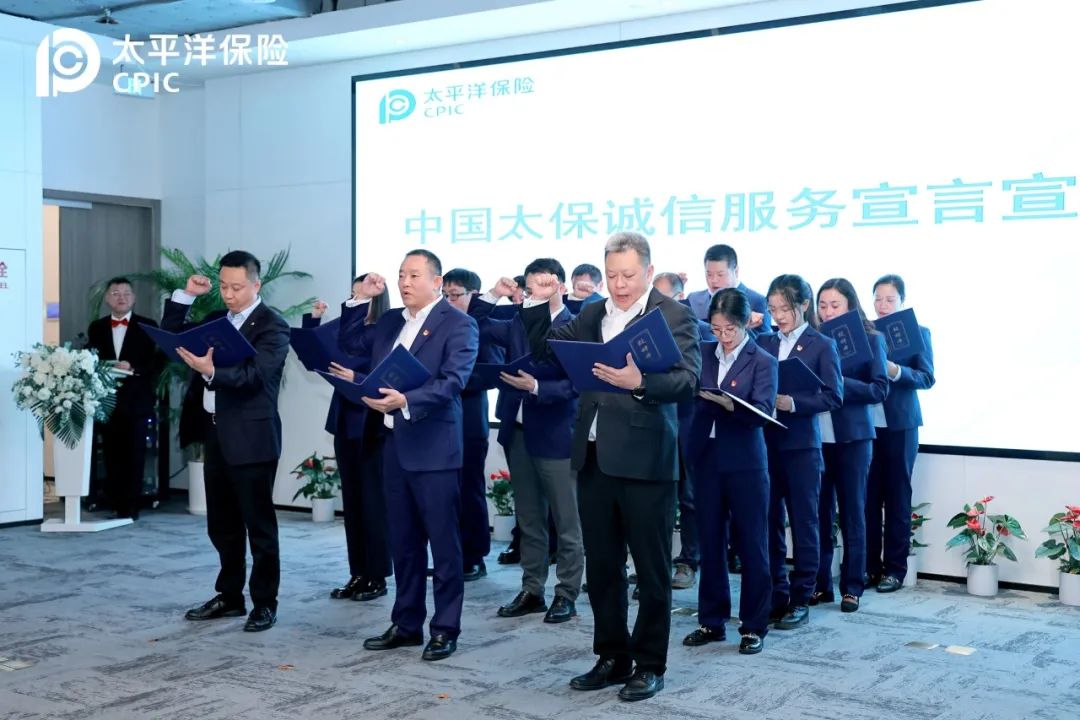四川消保示范区依托集团党群服务中心,积极发挥党员带头和示范作用,成立“诚信服务先锋队”,讲好诚信服务故事,普及金融基础知识,分享“责任、智慧、温度”的太保服务。活动中,中国太保产险副总经理、首席服务官张渝为四川消保示范区“诚信服务先锋队”授旗,产险、寿险、健康险四川分公司消保分管领导及主要骨干作为先锋队代表,共同进行《中国太保诚信服务宣言》宣誓。