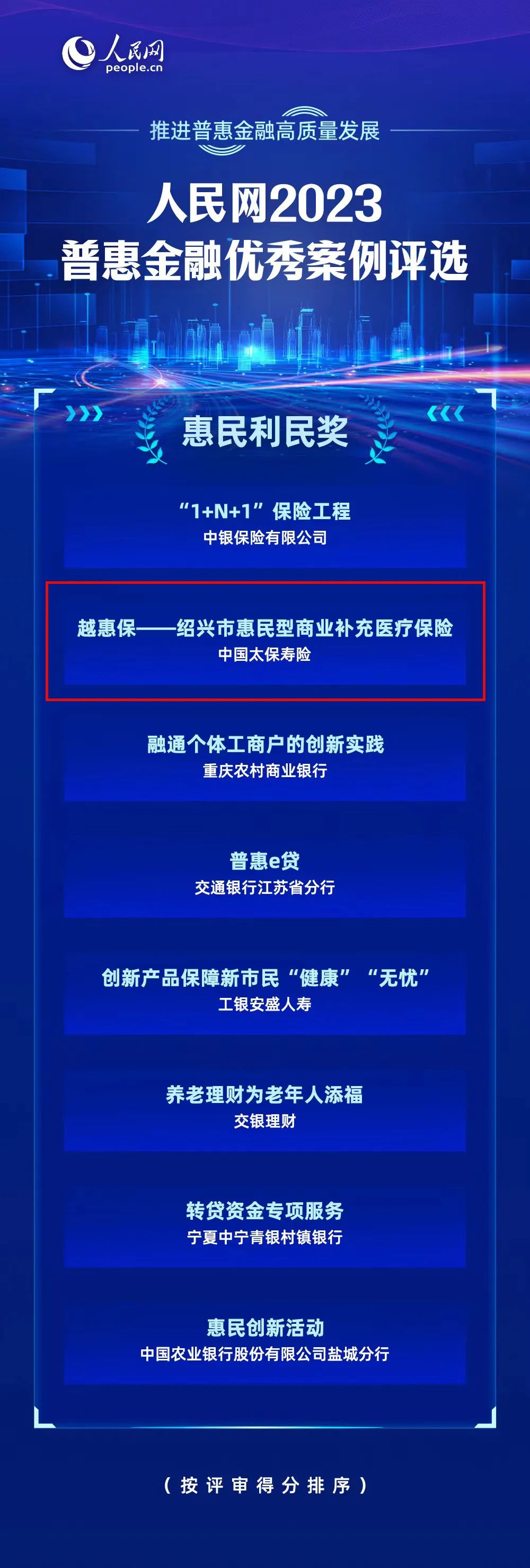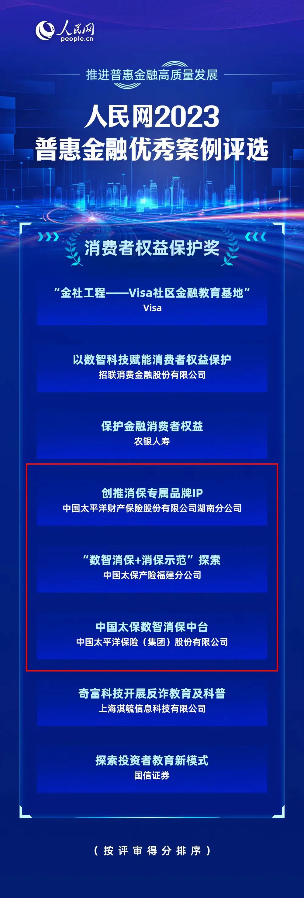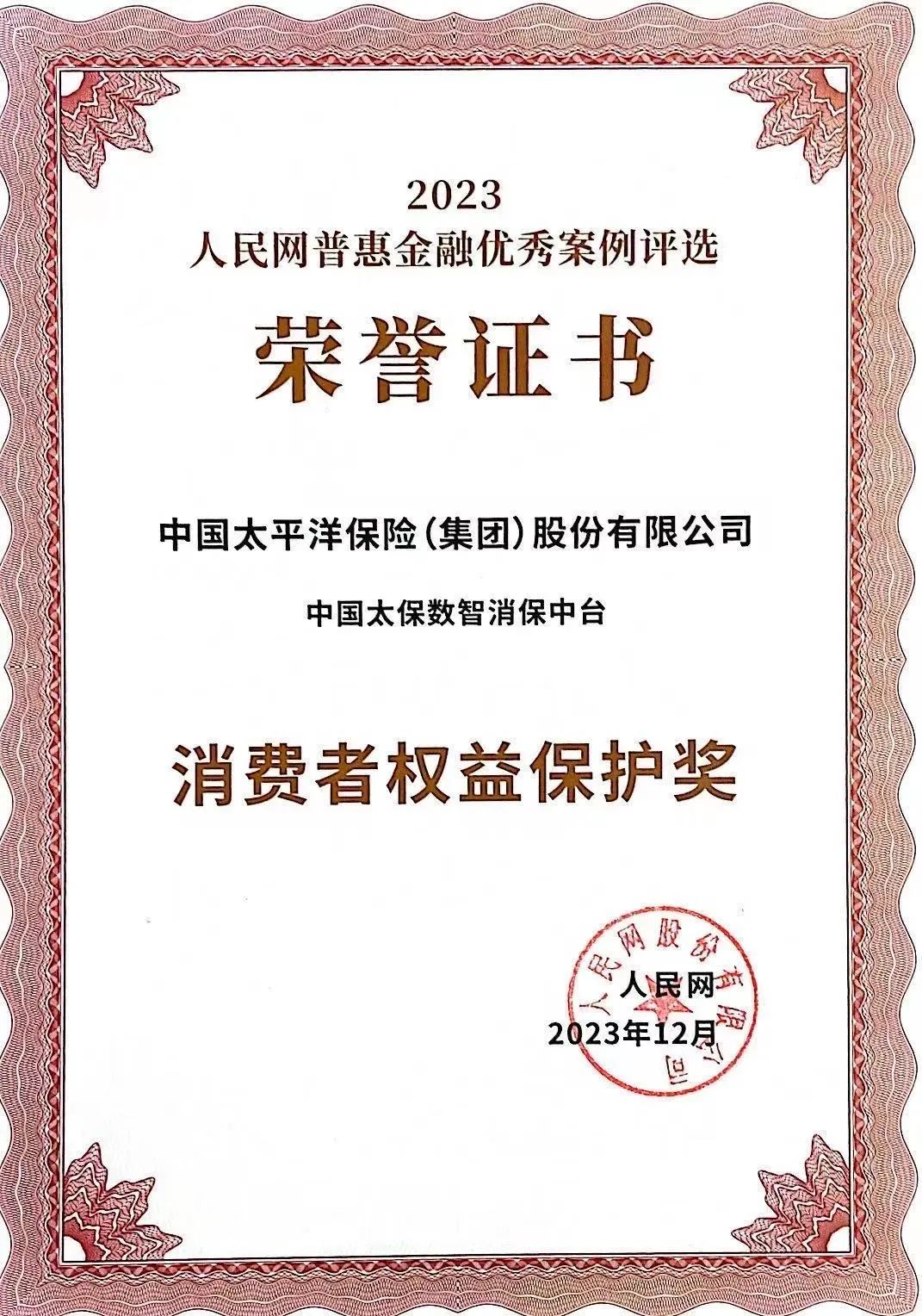 近日,由人民网主办的2023普惠金融优秀案例评选结果正式揭晓,此次优秀案例评选吸引了全国银行、保险、证券行业等多家金融机构共同参与,备受市场瞩目。中国太保凭借在金融消保、普惠服务等方面的创新实践脱颖而出,4则优秀案例获评消费者权益保护奖、惠民利民奖。其中,中国太保“数智消保中台”以及中国太保产险“数智消保+消保示范探索”“创推消保专属品牌IP”荣获消费者权益保护奖,在8席获奖案例中占得3席;中国太保寿险“越惠保-绍兴市惠民型商业补充医疗保险”荣获惠民利民奖。
