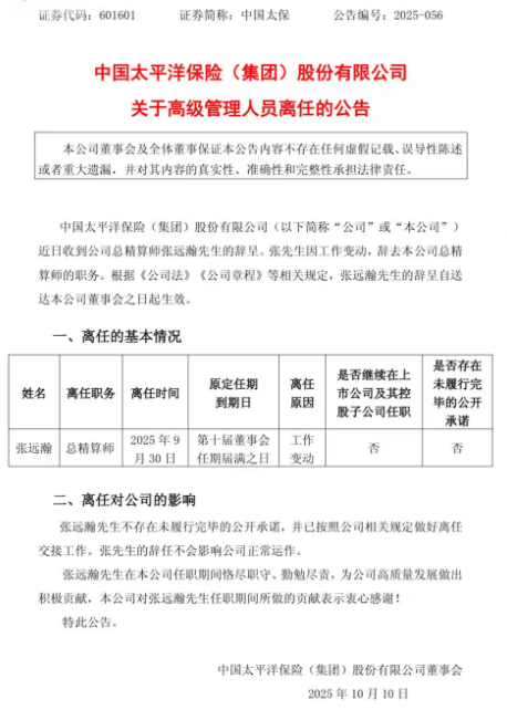 最近,市值超3500亿的中国太平洋保险(集团)股份有限公司(以下简称“中国太保”)出了个大新闻——执掌公司精算业务近13年的总精算师张远瀚辞职了。