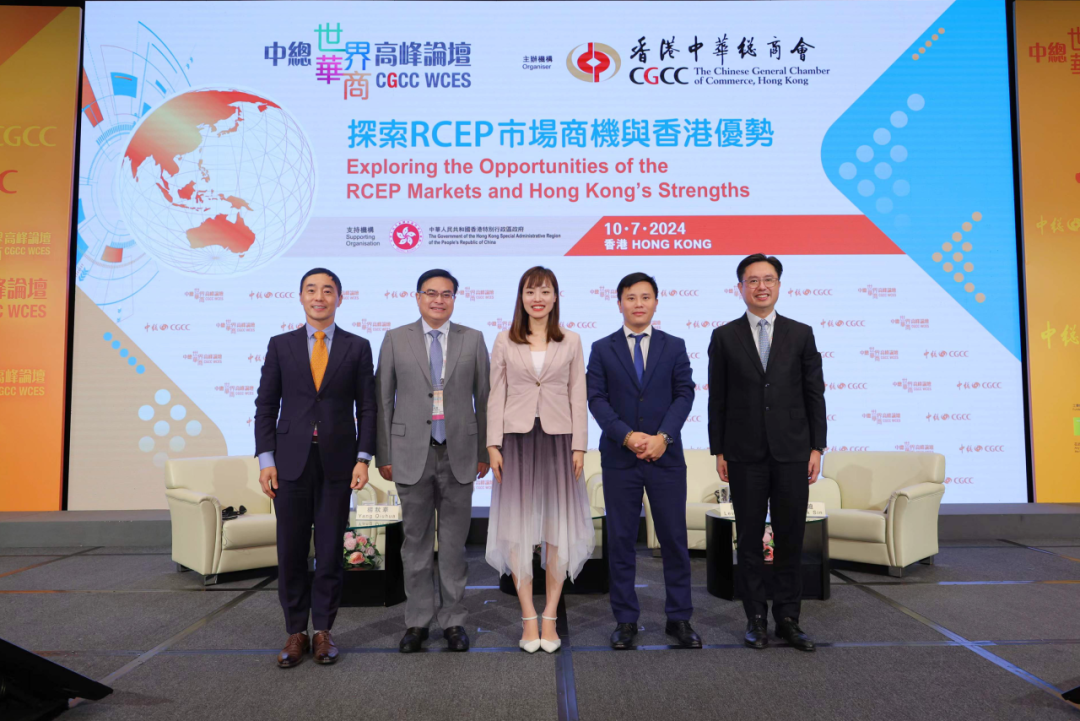 7月10日,2024中总世界华商高峰论坛在香港会议展览中心隆重举行,香港特区行政长官李家超、东盟秘书长高金洪应邀担任主礼嘉宾。论坛以“探索RCEP市场商机与香港优势”为主题,邀请了多位来自香港、内地及海外不同领域的领军人物,共同探索RCEP市场对金融、创新科技、专业服务的需求和最新发展,开拓RCEP的市场发展商机。上实集团副总裁、上海医药董事长杨秋华受邀出席并作专题论坛分享,共同探讨RCEP如何带动科创产业发展。