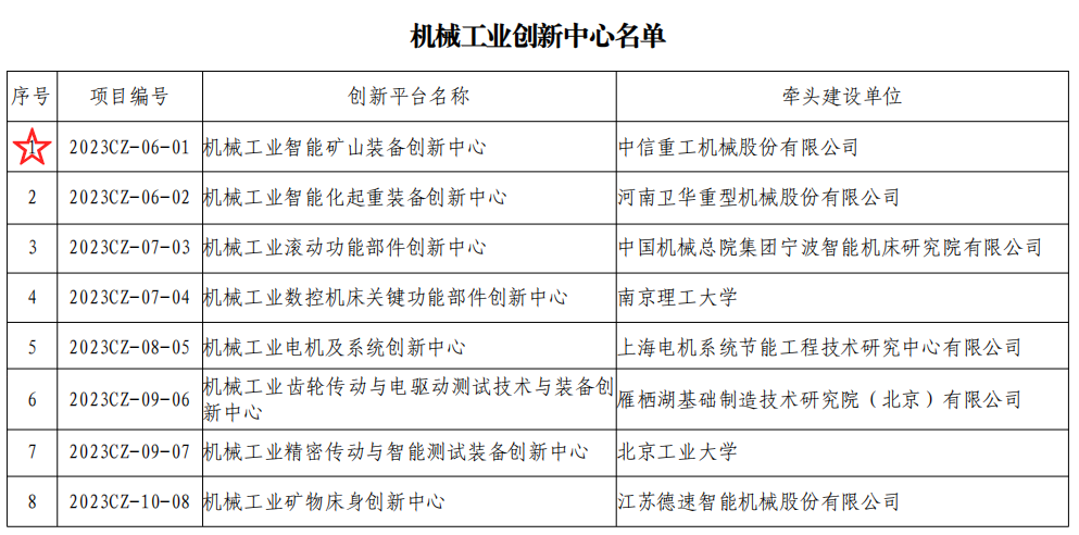 近日,由中国机械工业联合会组织的“2023年度机械工业创新中心建设项目”名单揭晓。中信重工牵头申报的“机械工业智能矿山装备创新中心建设项目”,成功获批。
