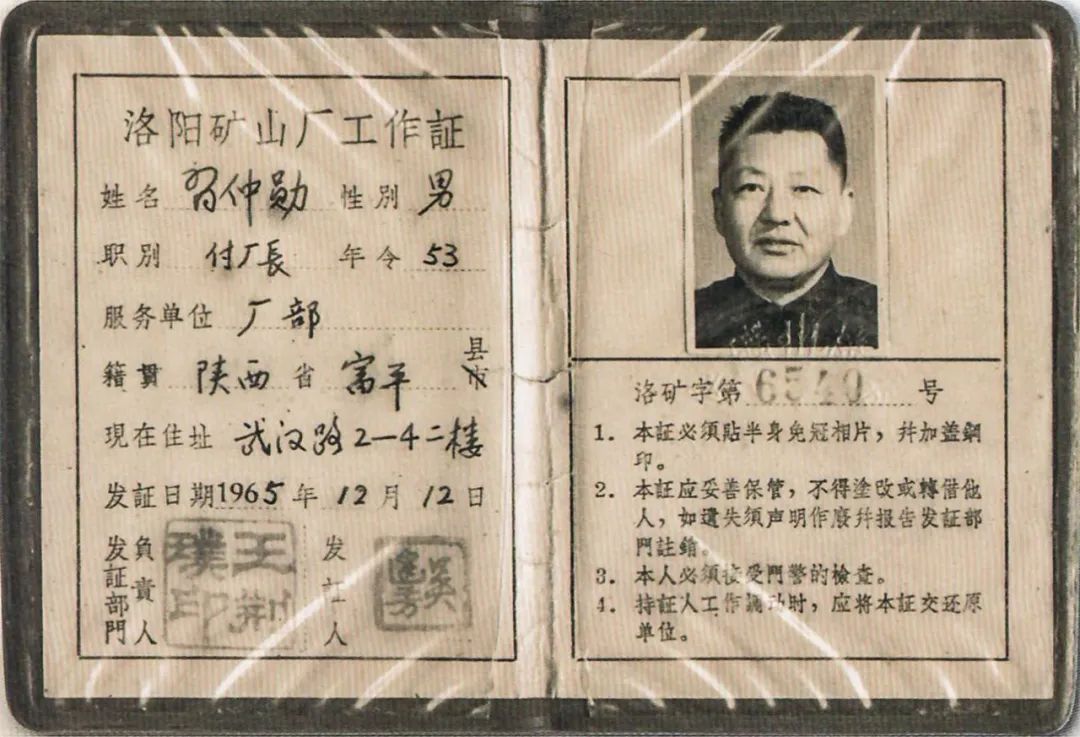 1965年12月至1967年1月,时任国务院副总理兼国务院秘书长习仲勋同志调任洛阳矿山机器厂副厂长。在洛矿的一年,习老坚定不移的信念、乐观向上的精神、联系群众的作风,始终激励着洛矿人拼搏奋进。1986年洛矿建厂30周年之际,习老亲笔题词“同心同德、团结奋斗、坚持改革、开拓前进”,并写下《我在洛阳矿山机器厂的一年》回忆文章,激励着重工人不断前行。