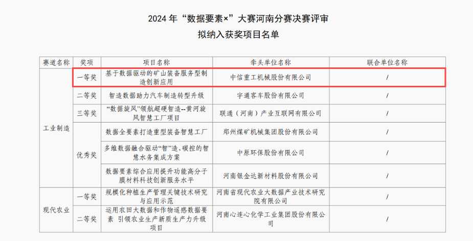 这次2024年“数据要素×”大赛全国总决赛项目,也是按照数据二十条中的工业制造、现代农业、商贸流通、交通运输、金融服务、科技创新、文化旅游、医疗健康、应急管理、气象服务、城市治理、绿色低碳等12个行业和领域,围绕主流技术路线,从全国30多个省、自治区、直辖市等上万个项目筛选出了666家代表性参赛队伍解决方案进入全国总决赛的名单。其中,数据要素×12大赛道中,竞争激烈的工业制造赛道,包括中信重工在内共65家进入全国总决赛。