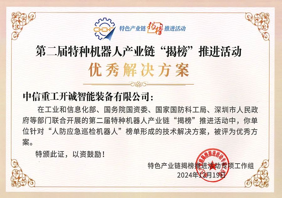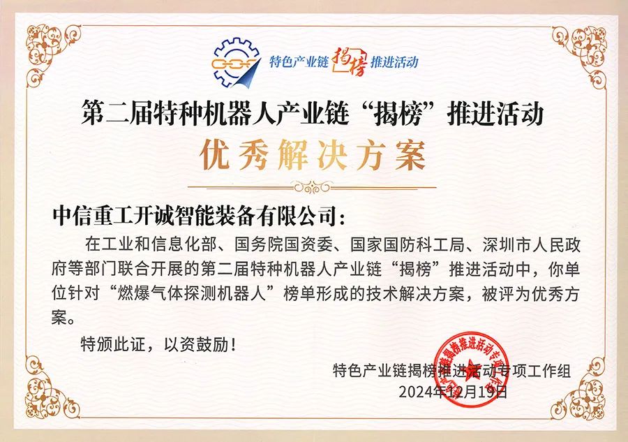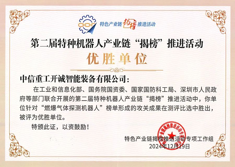 近日,第二届特种机器人产业链“揭榜”推进活动在广东深圳举办总结活动。中信重工开诚智能凭借出众的技术实力,喜获“优胜单位”和“优秀解决方案”多项大奖。