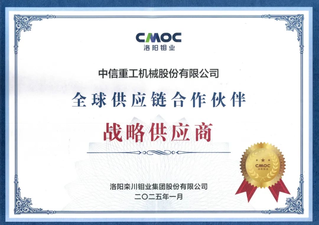 洛阳钼业在全球拥有6座矿山,连续7年入围《财富》中国500强,2024年位居第145位。作为洛阳钼业的战略合作伙伴和战略供应商,近年来,中信重工为其提供了破碎机、矿物磨机、高压辊磨机、立式搅拌磨等30多台套矿山重型装备,以优质产品和服务助力TFM混合矿、KFM铜钴矿两个世界级项目建设和投产,树立起洛阳钼业全球供应链生态圈合作典范。