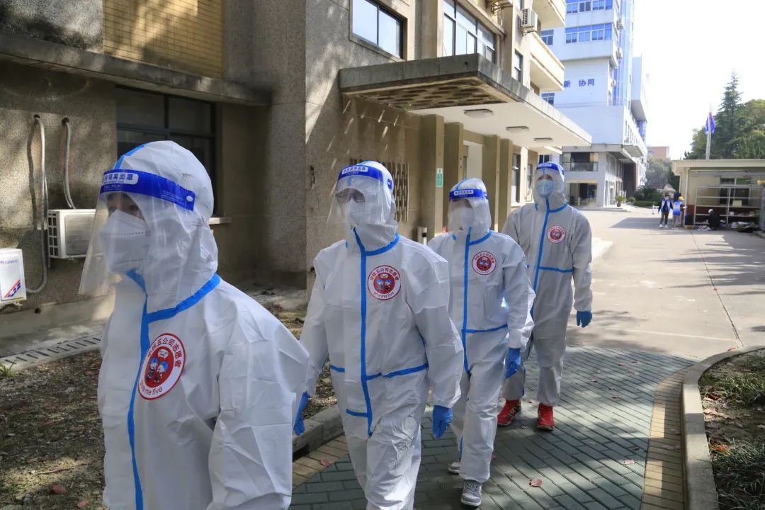 志愿者们积极准备、随时待命。接到紧急通知后,有的志愿者来不及吃上一口已经做好的饭菜,就整装跟组奔赴检测现场。当天上海市有持续雨水和大风,温度急剧下降。志愿者们穿着防护服,喝不上一口热水,坚守现场5小时耐心为居民解答问题,帮助登记等。有的志愿者因为大量的讲解嗓子哑的已说不出话,有的志愿者因为岗位处在风口冷的手已握不起来,但当两组队员在深夜工作完毕相遇后,仍展露出灿烂的面容、迸发出爽朗的笑声,这正是核工业人“责任”和“进取”的基因所在。