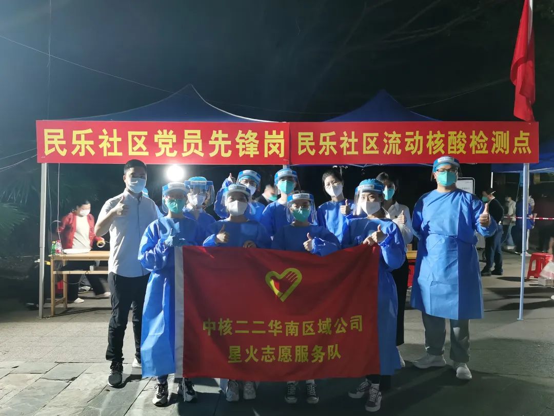 3月11日至17日,中核二二深圳区域单位党员和团员青年近70人组成的星火志愿服务队,自告奋勇参加居住地所在社区疫情防控,并协助社区完成2轮核酸检测。3月12日至今,公司江苏宿迁正荣府花园项目部37名志愿者主动参与到宿迁市道口社区的疫情联防联控中,协助社区完成2轮核酸检测,共计2500余人次;同时,协助当地住建局在项目部搭建临时核酸检测点,共计服务周边在建单位及社区居民1500余人次进行核酸检测。