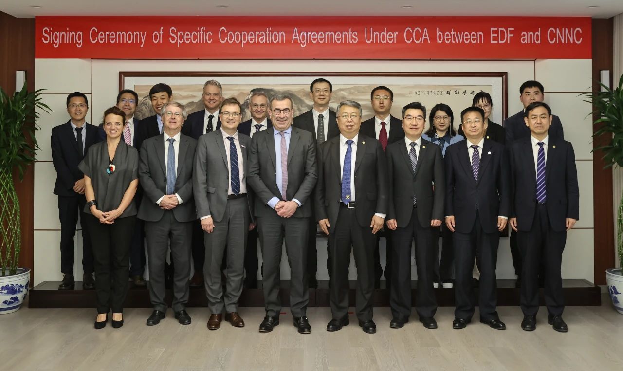 4月28日,在中核集团党组成员、副总经理张凯和法国电力集团高级执行副总裁于云飒(Xavier URSAT)的见证下,中核集团副总工程师、中国核建党委书记、董事长陈宝智与法国电力集团研发副总裁萨克瑞斯(Jacques SACRESTE)、副总裁兼法电(中国)总裁尚为邻(Jean-Philippe LAMARCADE)分别签署了《核电先进建造技术联合实验室共建协议》及《EPR2特别任务战略性咨询合同补充协议》,标志着双方全景式合作正式迈入新阶段。