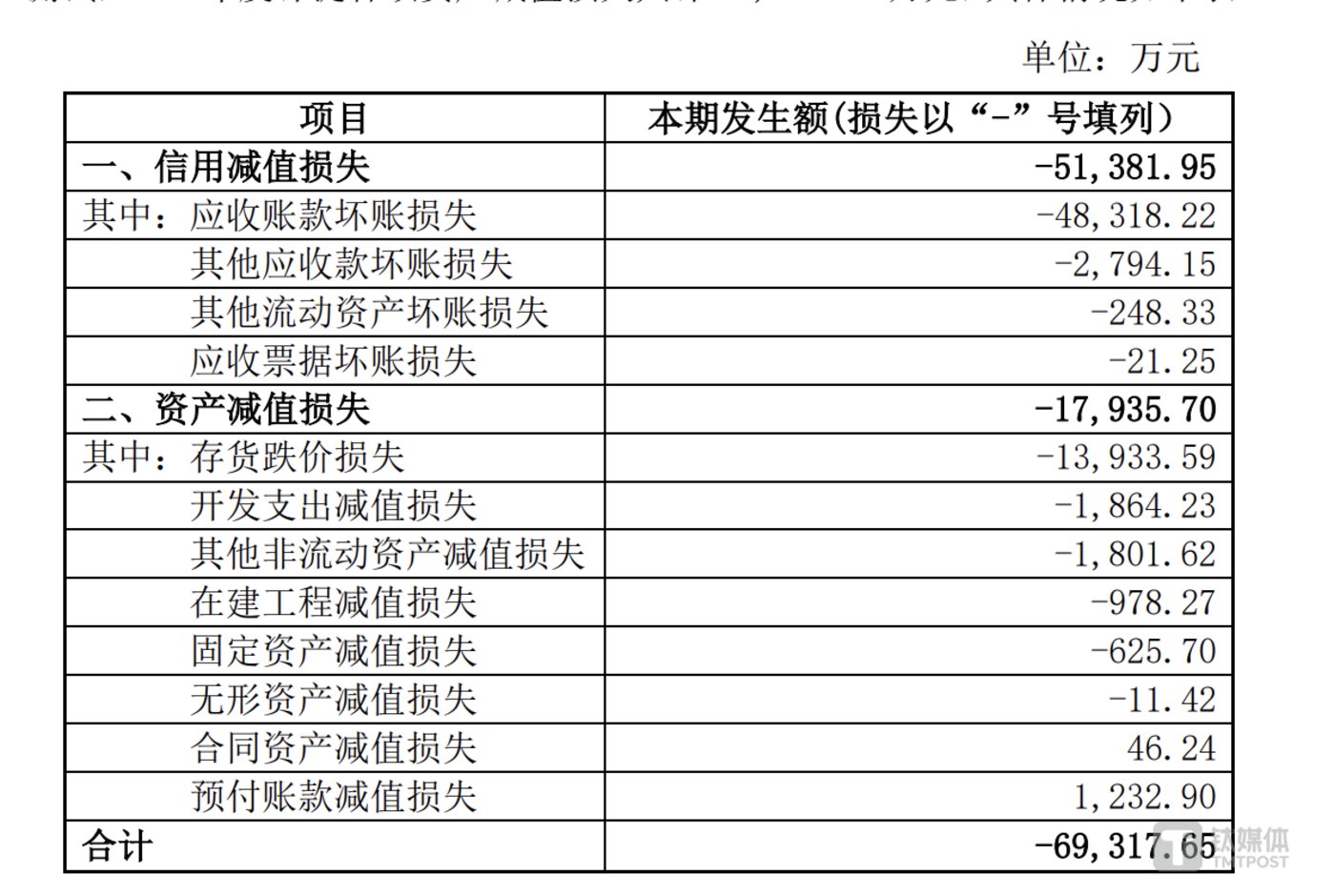 除了毛利率下滑等因素外,计提资产减值准备也是导致公司净利润下滑的原因之一。