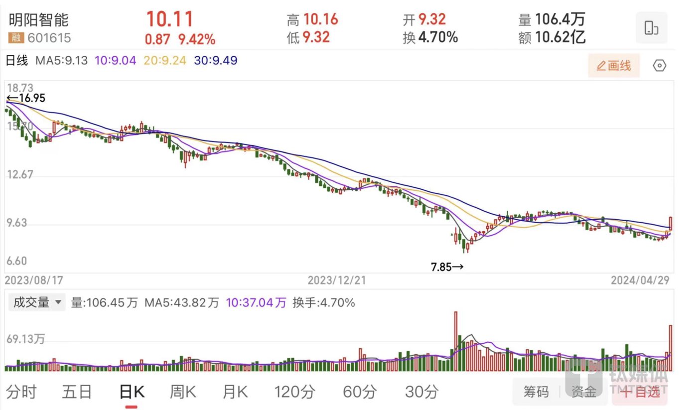 与Lucky Prosperity和Eternity Peace不同的是,据同花顺IFind金融数据显示,Citibank的进场时间为2022年7月,当时明阳智能股价正处于历史高位,每股价格在28.84元至35.68元区间。