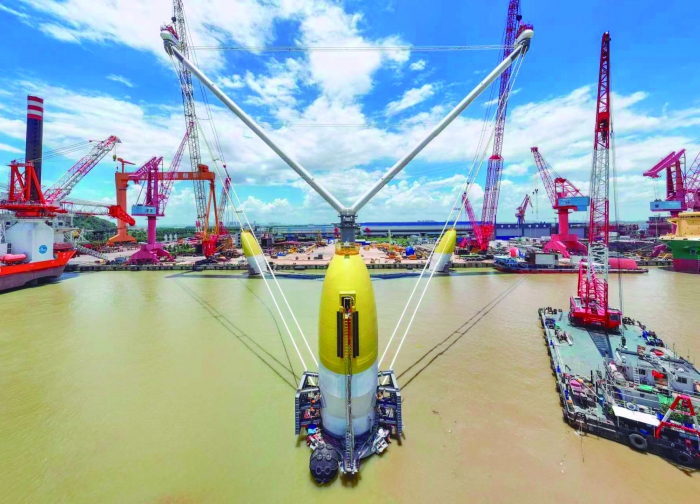 全球首创单点系泊设计技术、拥有近3000个智能感应器、可应用于水深35米以上全球广泛海域……由明阳智能研制的全球单体容量最大的漂浮式风电平台“OceanX”在继浮式基础下水后,正式进入塔筒吊装阶段,此举标志着全球首创的双风轮、单体容量最大的漂浮式风电平台研制取得重大进展。