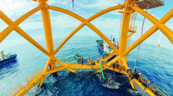 “我们正在开发海洋能源岛,把一座座风力发电平台相连接,成为一座‘海上城市’,汇聚海上能源和资源,源源不断地输出给周边岛屿和陆地。”张传卫说,“明渔一号”探索海上风电与海洋牧场融合的新路径,海上发电、海中养鱼,实现绿电一体化直供养殖的低碳渔业,立体化开发海洋资源,提高海洋资源的利用效率。