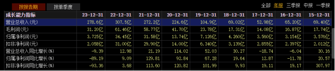 在行业中标价格不断下滑的背景下,明阳智能2023年出现了上市以来首次营收及净利润的大幅下滑。2023年,公司实现营收278.59亿元,同比下降9.39%;实现归母净利润3.72亿元,同比下滑89.19%。