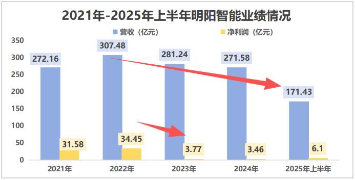 回顾其财报轨迹:公司营收在2022年创下300亿元的高点后,便调头向下,增长乏力。而更触目惊心的是其净利润表现。