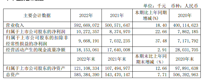 2022年,中国中冶实现营业收入5,926.69亿元,较去年同期增长18.4%;净利润为129.27亿元,较去年同期增长11.37%;归属上市公司股东净利润为102.72亿元,较2021年增长22.66%;基本每股收益为0.45元,2021年的基本每股收益为0.35元。