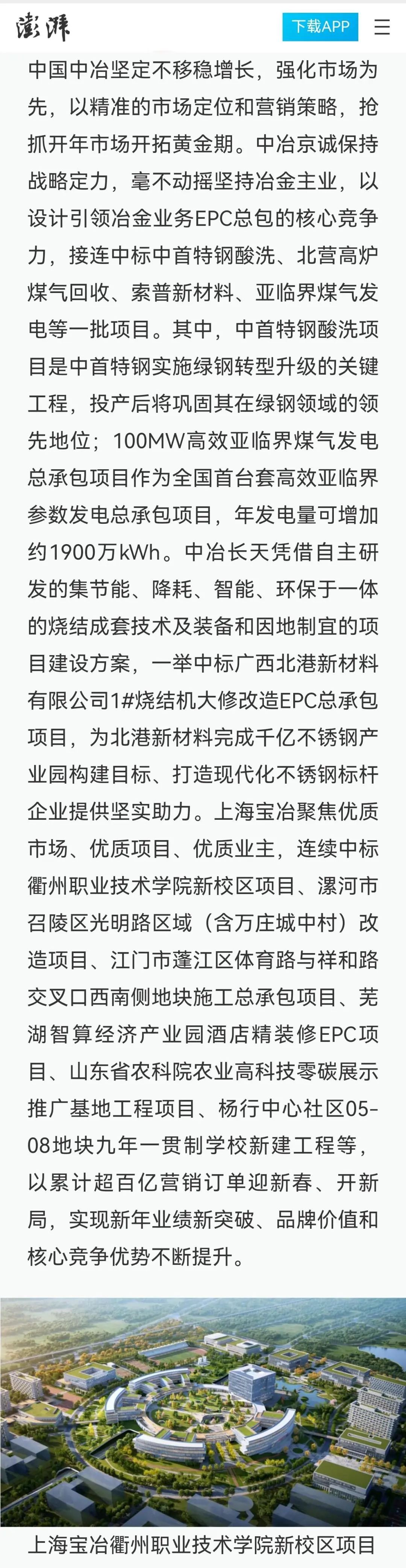 连日来,新华网、人民网、学习强国、环球网、中国网、中国发展门户网、中国城市网、中国冶金报、中国有色金属报、澎湃新闻、一带一路网、中国钢铁新闻网等10余家主流媒体纷纷将镜头与笔触对准中国中冶,从市场营销亮“奇招”、智能建造出“实招”、绿色低碳亮“硬招”、海外业务拓“新招”、科技创新展“高招”五个方面以图文并茂的形式全方位报道中国中冶首月“开门红”取得的实干实绩实效,点击量、浏览量、评论量突破百万,成功吹响中冶高质量发展的开局号角。