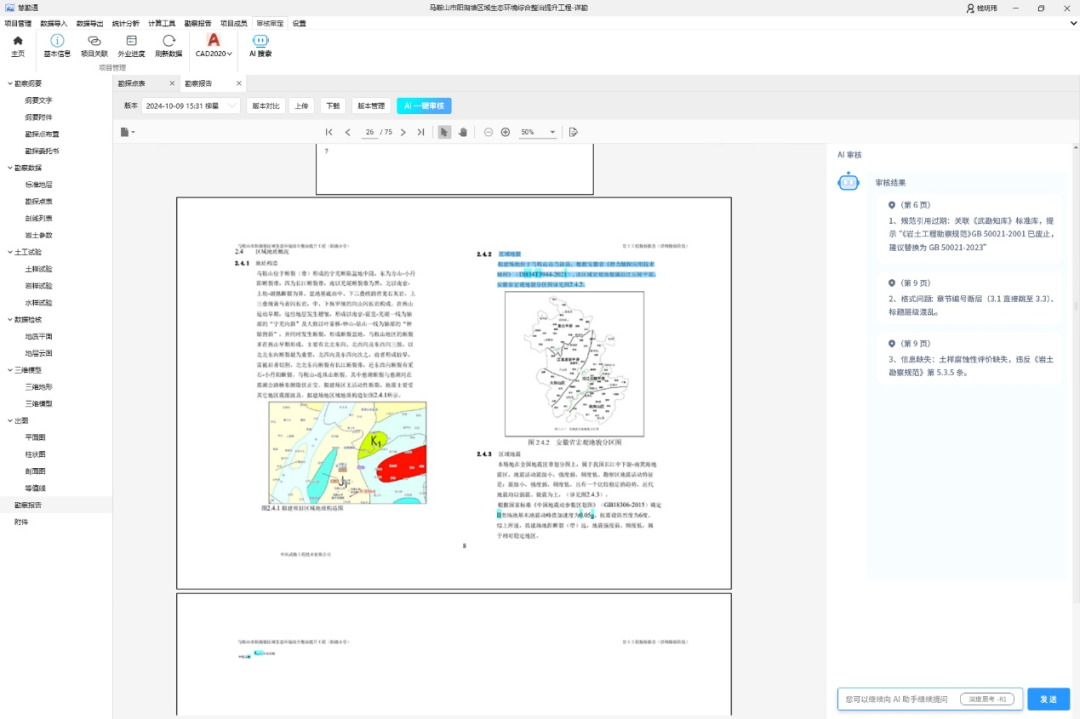 依托DeepSeek大模型多模态处理能力与逻辑推理优势,中冶武勘结合企业实际,将其接入云协作平台“慧勘通”中,辅助报告审核工作,以“智能”提升报告的准确性、合规性,精准匹配岩土工程场景需求。此外,中冶武勘自主研发的“武勘知库”智能知识库系统,搭载智能检索引擎,支持“全库智能检索”与“专项规范溯源”双模式查询,解决了传统人工查阅行业痛点。大模型的训练与推理全程采用本地化部署,严格执行权限管理与加密传输,保障核心数据安全。