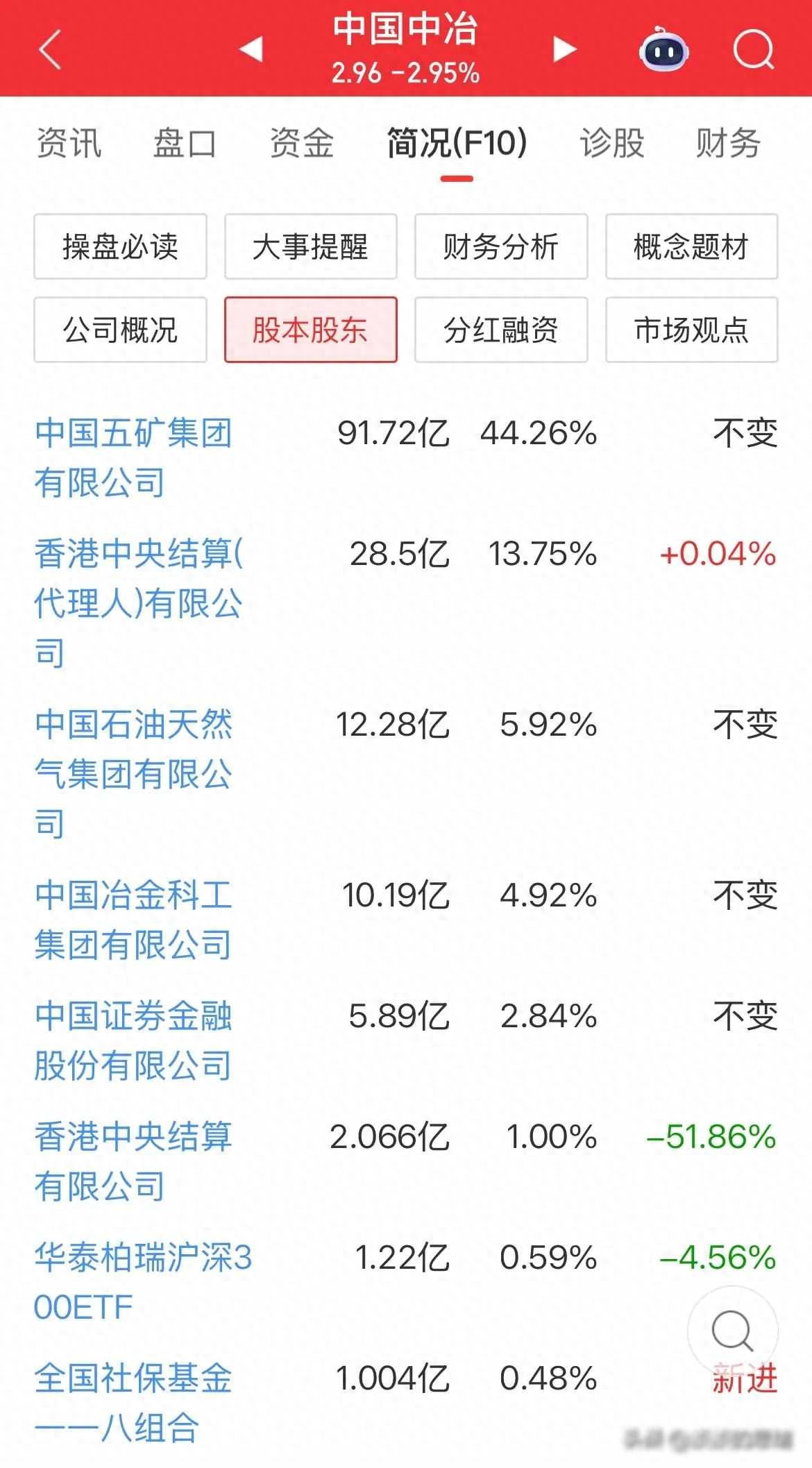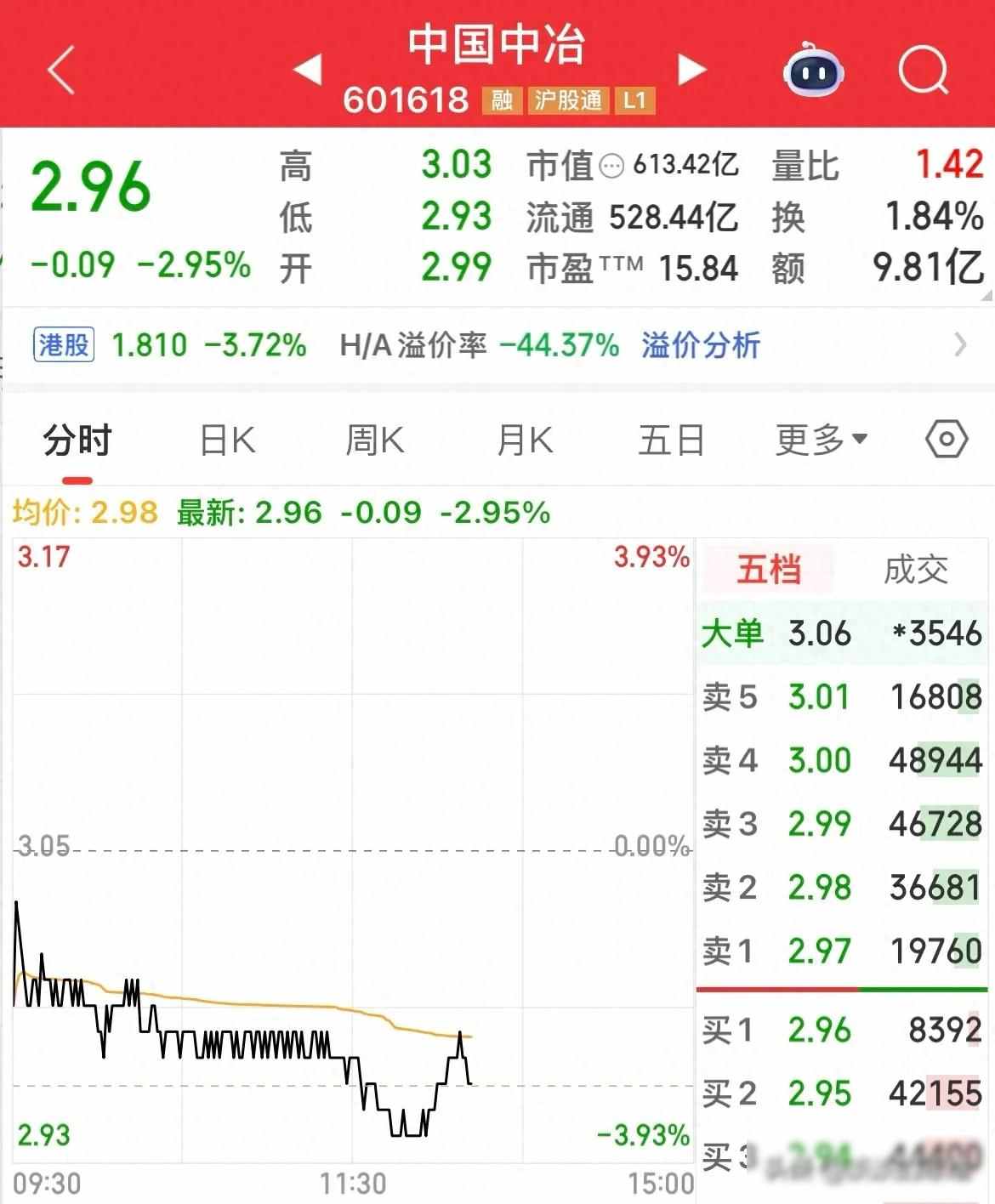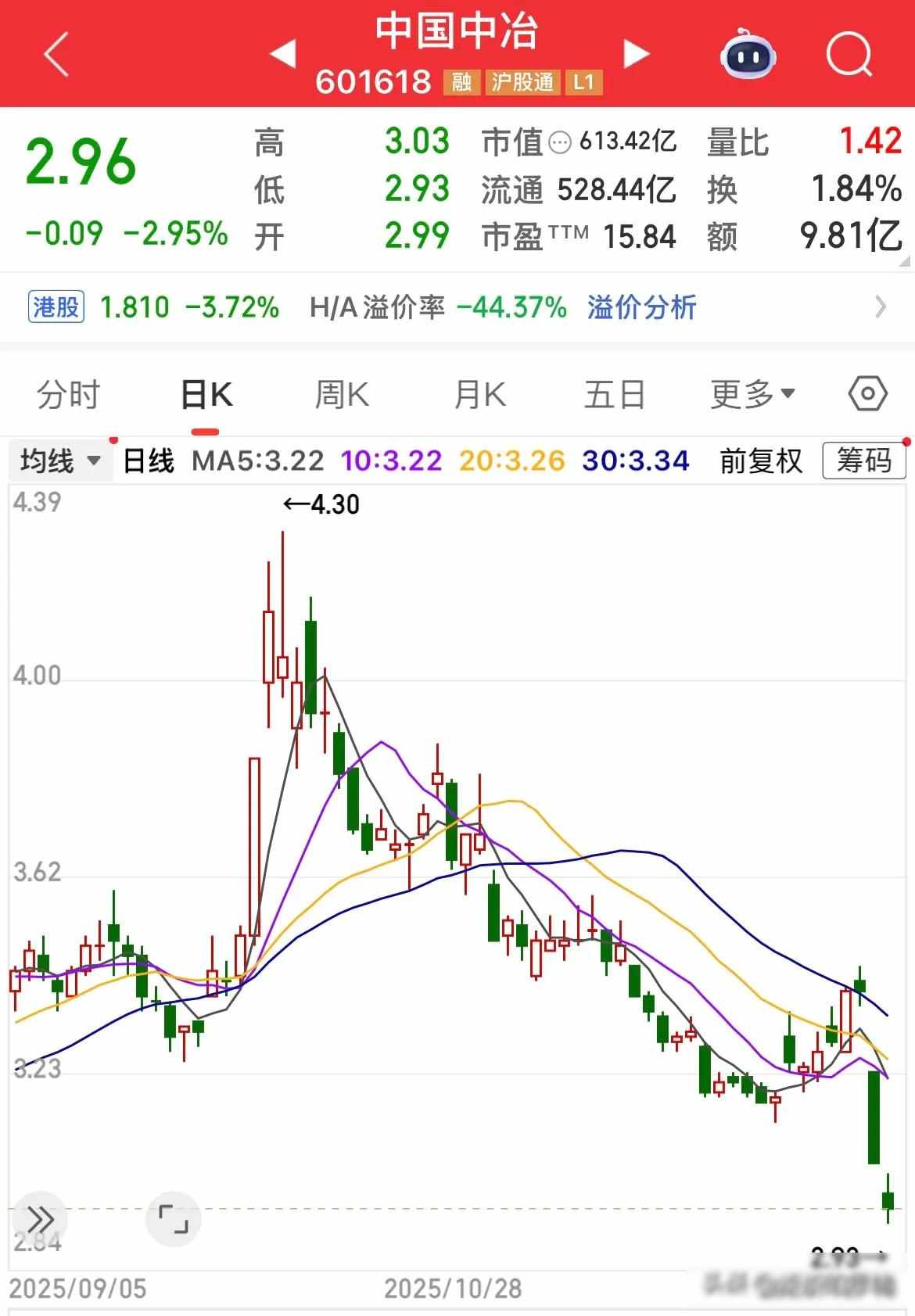 最近股市跌得挺狠,上周五收盘才2.96元的 中国中冶 ,昨天直接跌停,股价落到2.78元,两个月前它还在4块3附近,现在跌了三成多,老股民看了也直摇头。