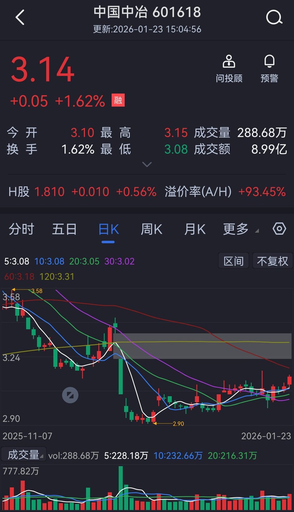 最初关注中国中冶,是被铺天盖地的“全球冶金建设承包商龙头”标签吸引。资料里写着它全球冶金工程市场占有率超60%,手握氢冶金42项专利,还是一带一路的核心标的,海外新签合同额连年增长,国企背景、技术壁垒、业绩稳健,每一个点都戳中了我对价值投资的期待。彼时股价在6元附近震荡,我看着研报里的“估值洼地”“业绩拐点”,毫不犹豫在6.29元满仓进场,心里盘算着这只千亿市值的龙头,怎么也能走出一波慢牛行情,翻番只是时间问题。