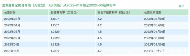 目前市面上大部分万能险产品的结算利率在4%左右,合同约定的最低保证利率则普遍为1.75%-3%。据公司官网公布的万能险利率公告显示,今年5月,中国人寿对8款万能险产品的结算利率进行下调,下调幅度为20-50BP。其中,中国人寿的国寿鑫尊宝终身寿险(万能型)(庆典版)折合的年结算利率均为4.2%,较今年1月初均下降50BP,是上述8款万能险中结算利率下调幅度最大的一款产品。