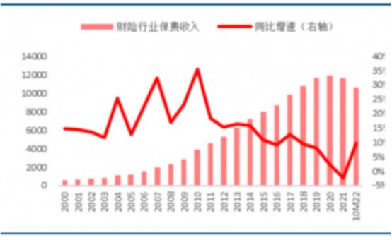 先从负债端来看,虽然在2022年疫情等因素的影响下,居民储蓄意愿高企,消费意愿不强的情况下,财险业务仍实现了保费的较快增长。2022年前10个月,财险公司原保费收入同比增长9.94%。