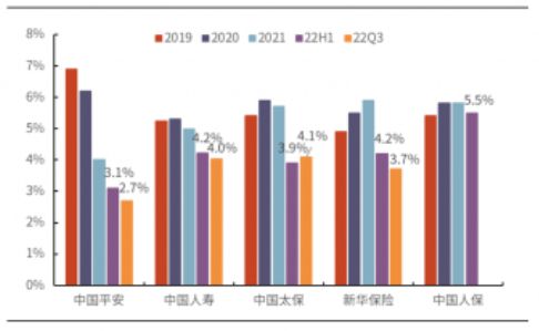 图表 2 . 2022年以来主要上市险企总投资收益率承压
