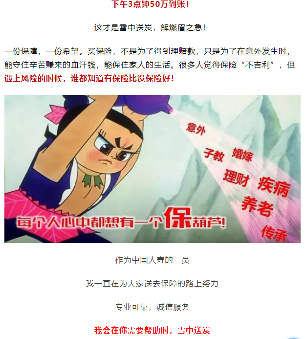 一份保障,一份希望,买保险,不是为了得到理赔款,只是为了在意外发生时,能守住辛苦赚来的血汗钱,能保住家人的生活。很多人觉得保险“不吉利”,但遇上风险的时候,谁都知道有保险比没保险好!