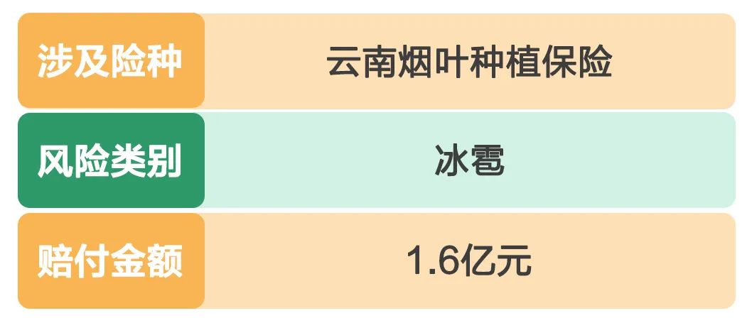 2022年7月上旬至8月下旬,云南全省境内普遍出现强对流天气,发生了三次冰雹灾害,中国人寿财险云南分公司承保区域昆明、玉溪、临沧、红河、德宏等五个地州烟叶因冰雹灾受损严重,三次冰雹灾害承保烟叶报损面积超50万亩。后经过三次现场查勘定损,政策性烟叶保险损失面积26.8万亩,赔款金额1.6亿元。