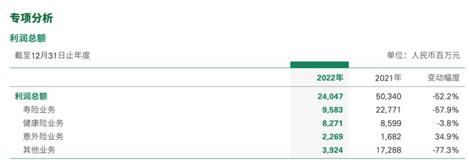 “互联网保险业务”自多元业务板块的其他渠道中独立,业务快速增长,报告期内监管口径下,互联网保险总保费达628.96亿元,同比增长88.3%。“大健康大养老业务”业务原也归属于综合金融板块,2022年公司通过出资设立的国寿大养老基金加速整合中国人寿集团内部康养资源,以城市中心区域的养老公寓或者机构养老为主,持续推进在京津冀、长江经济带、粤港澳大湾区等战略区域的养老项目布局。