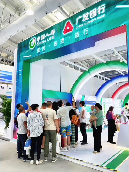 中国人寿-广发银行联合展位分为大国重器、大美神州、大爱为民三个篇章,吸引了观众纷纷驻足观看。